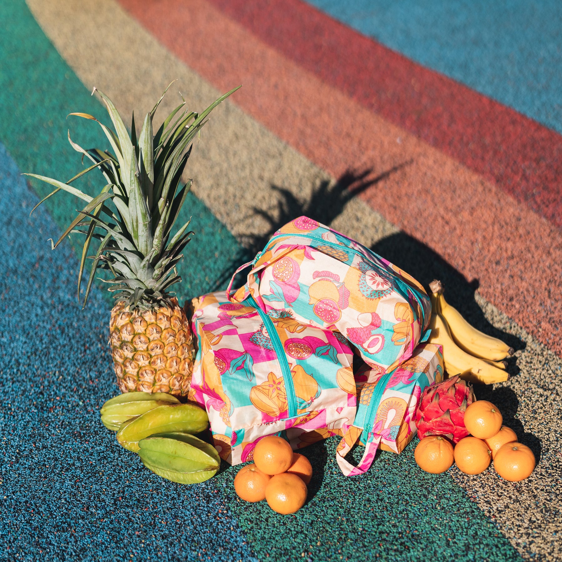 Peekaboo Tote • Hibiscus • Blue over Rainbow Ombre