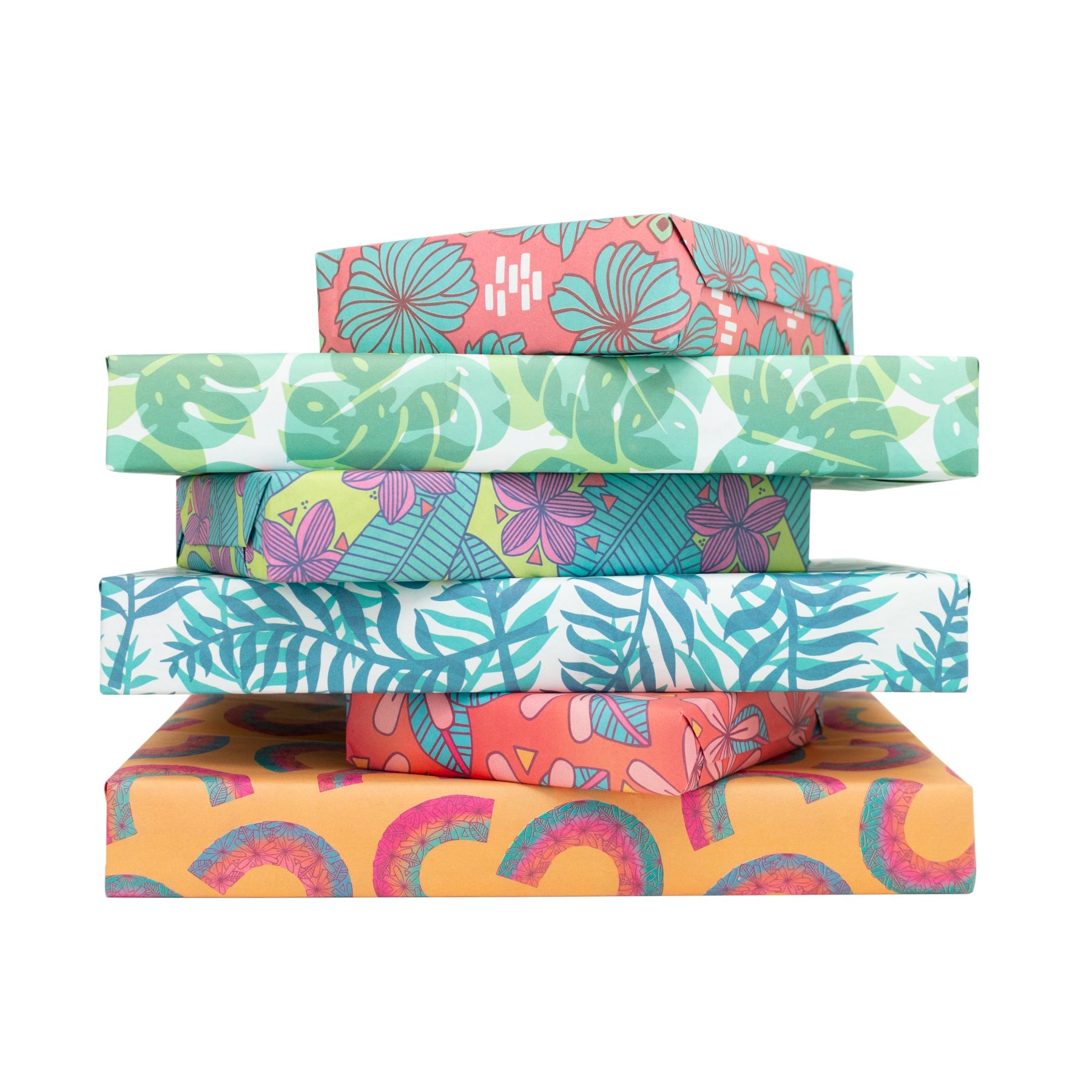 Square Tissue Box Cover • Hibiscus • Teal over Pink and Orange Ombre
